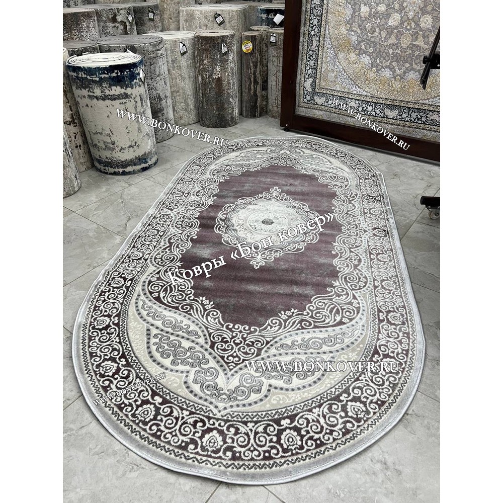 Импозантный Ковер в гостиную дизайн 01 Сиреневый Овал наполняет интерьер жилого пространства теплом и уютом, гармонично сочетает в себе изящество и стиль. Он создан из современных материалов, комфортный и долговечный.